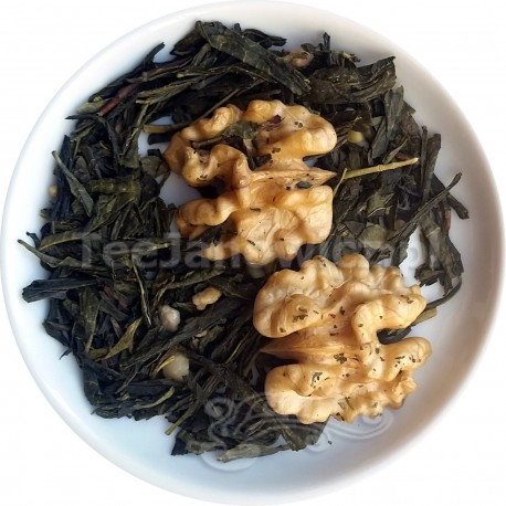 Skład: zielona herbata, kawałki orzechów włoskich, kawałki orzechowego krokantu, aromat, kawałki migdałów.