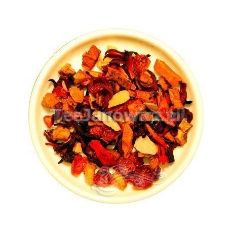 Ta adwentowa herbatka zachwyci Cię swoim wspaniałym owocowym smakiem i korzenną nutą. Z każdym jej łykiem delikatnie wyczuwa się smak marcepanu i pomarańczy. Mieszanka kwiatu hibiskusa, dzikiej róży, kawałków jabłek, kawałków migdałów i aromatu.