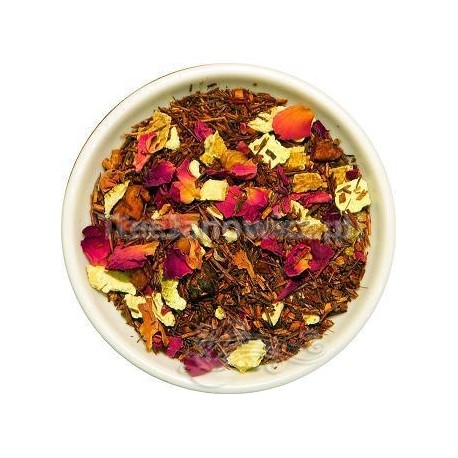 Ta wyjątkowa, korzenna mieszanka idealnie nadaje się do picia w chłodne (nie tylko jesienne) wieczory. Niezwykły smak i czarujący zapach wprowadza we wspaniały nastrój. Niezapomniane przeżycie. Mieszanka Rooitea z kawałkami jabłek, skórką pomarańczową, płatkami róż i aromatem.